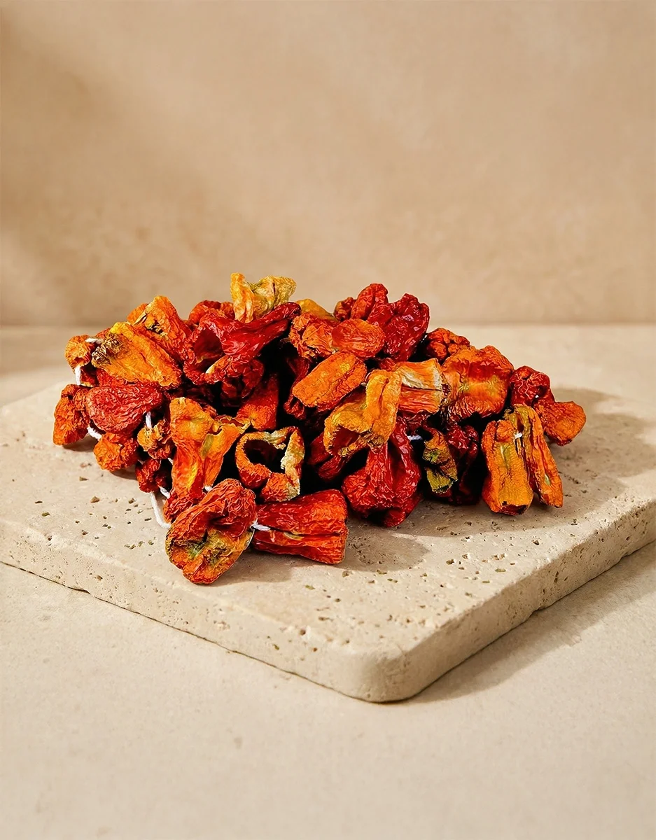 Kurutma işlemi lezzeti yoğunlaştırır. Kurutmalık Biber; doğal yöntemlerle suyu alınarak aroması belirginleşmiş geleneksel bir üründür.